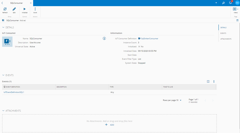 - Attachments - shows the documents that are attached to the IoT Consumer and enables the user to attach additional documentation to the IoT Consumer.