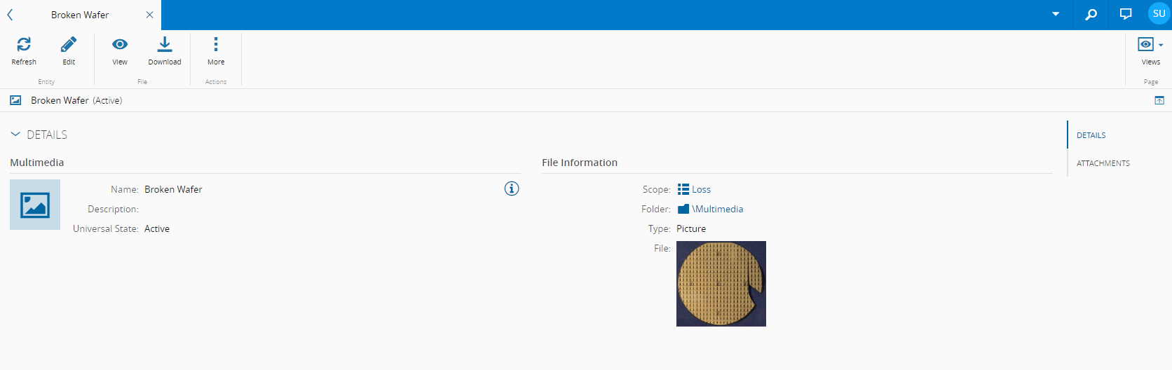 - Attachments - shows the documents that are attached to the Multimedia object and enables the user to attach additional documentation to the Multimedia object.