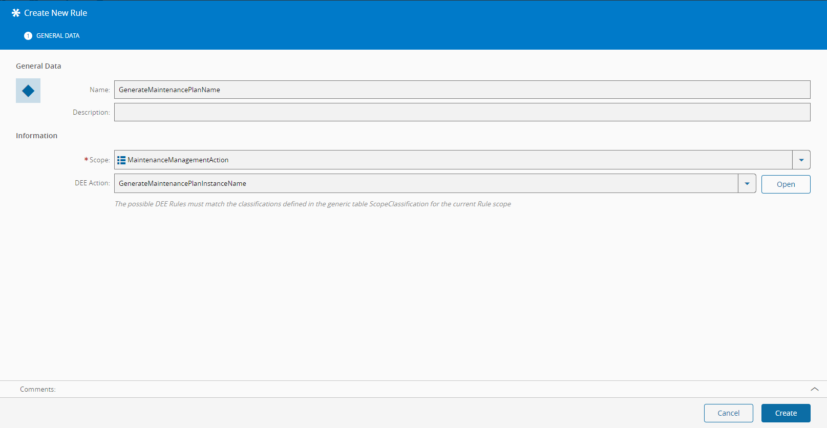 The filtering of DEE rules to be shown for a given scope is based on the DEE rules classification and it's maintained in the Generic table ScopeClassifications.