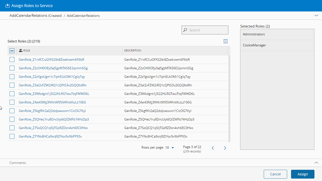 - Select the Roles you wish to unassign from the Service and select the Unassign button.