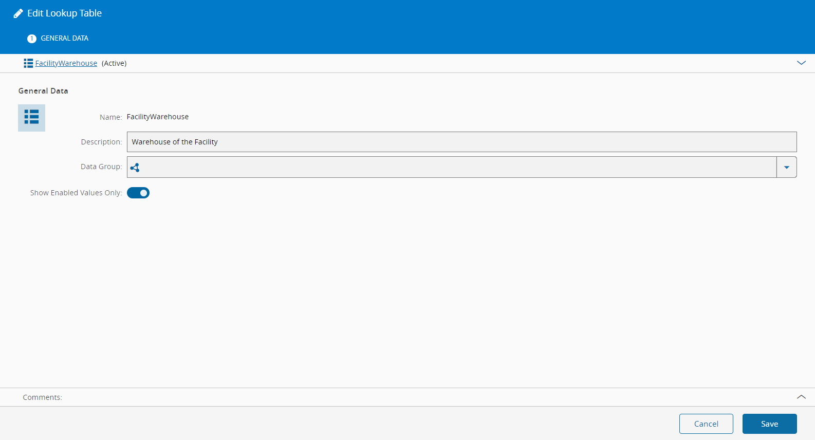 - Disable existing records by selecting the values and activating the Enable switch accordingly.