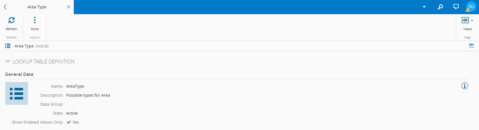 Table: System Lookup Tables