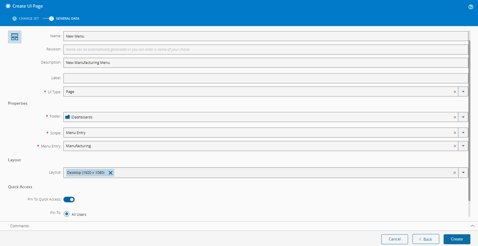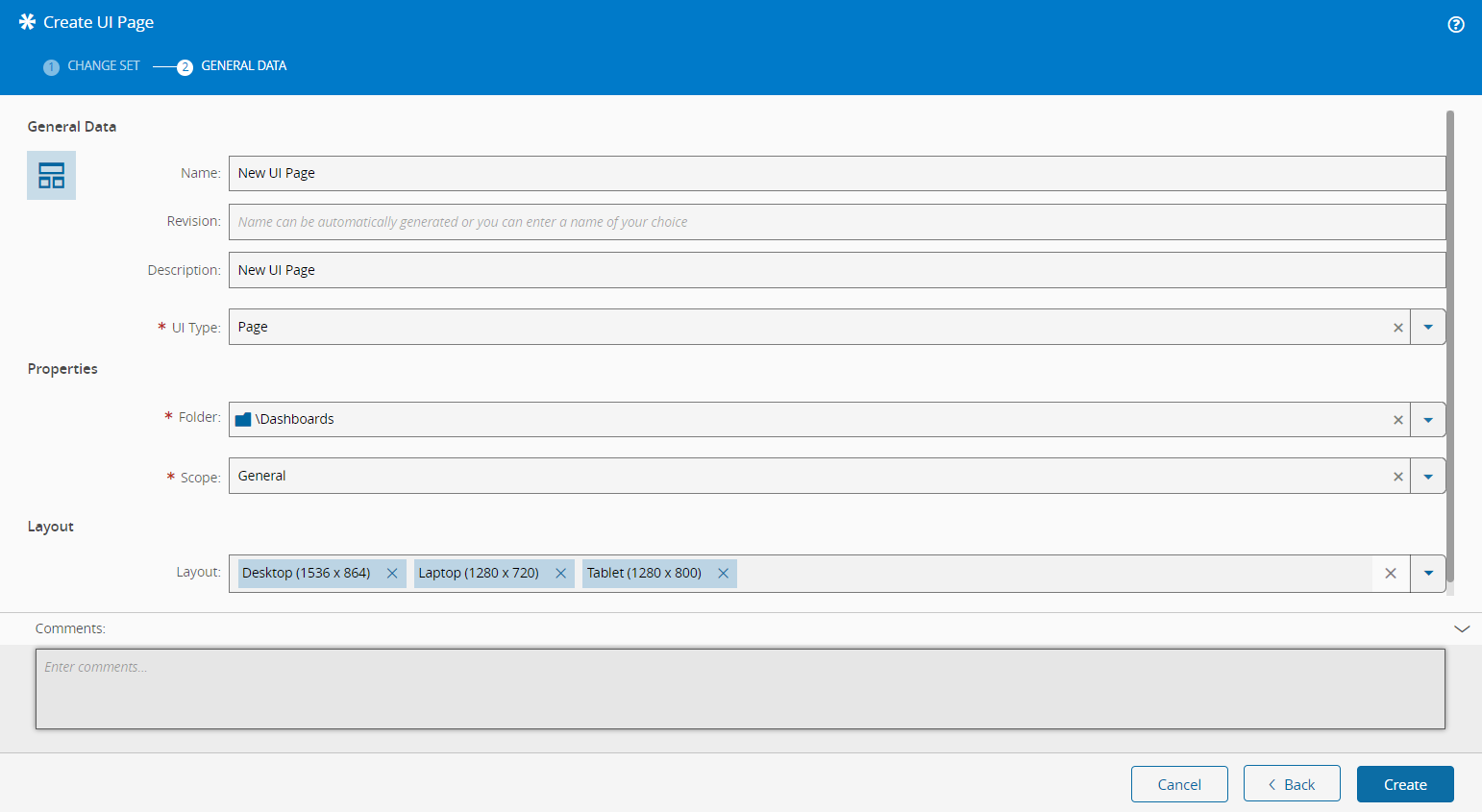 - Enter the UI Page name.
