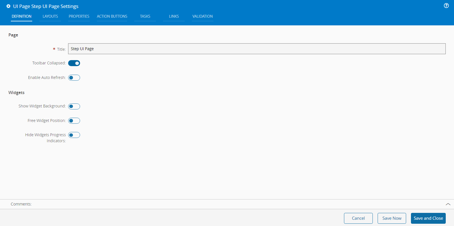 - Toolbar Collapsed - expand or collapse the UI Page action bar.