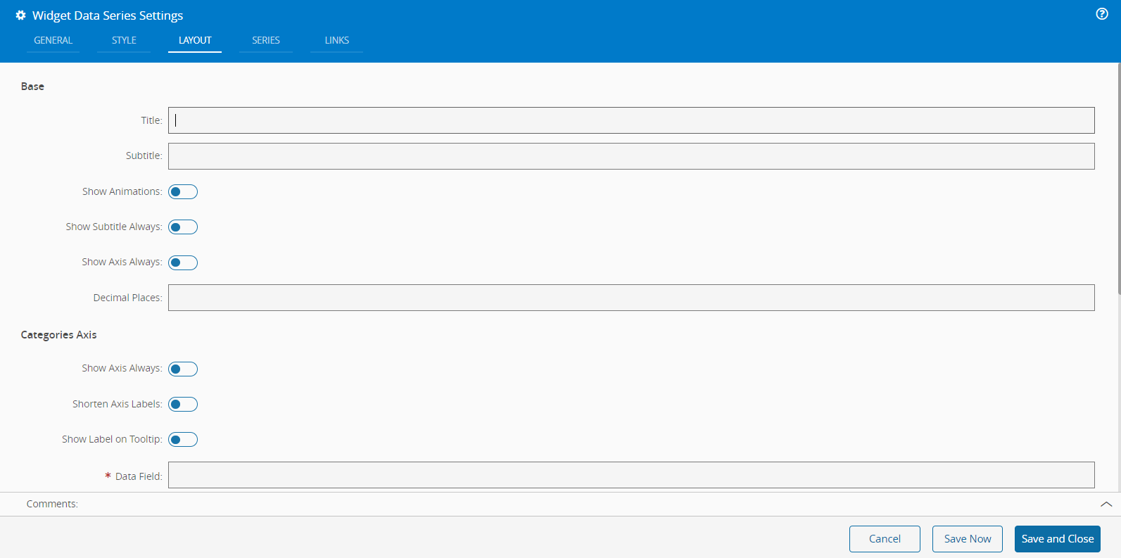falseby default. - Data Field - Indicates the name of the data field used for the categories, linking the chart to the appropriate dataset.