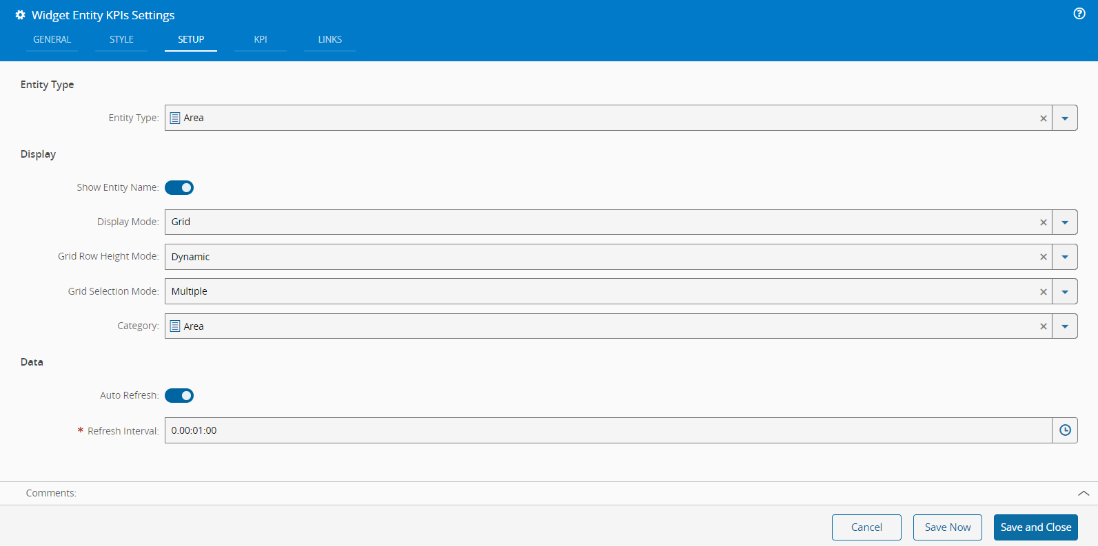 - Auto Refresh - Choose whether the data should refresh periodically. If enabled, define the interval for each automatic refresh. This option is set to