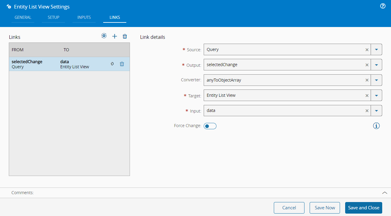 Link the Query to the Entity List widget: