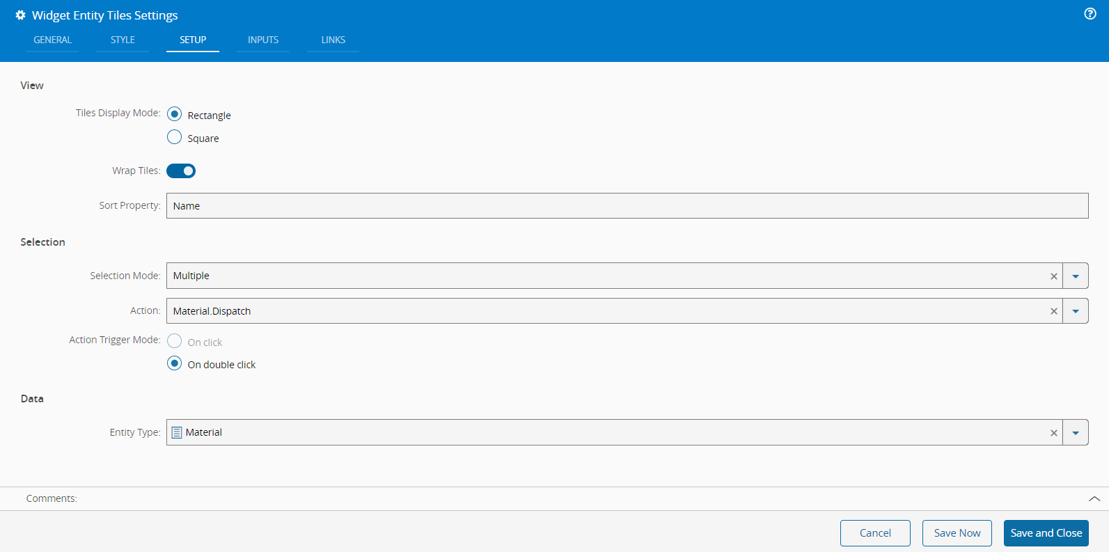 - Action - Choose from any of the available actions in the MES system that should be executed when a tile is selected.