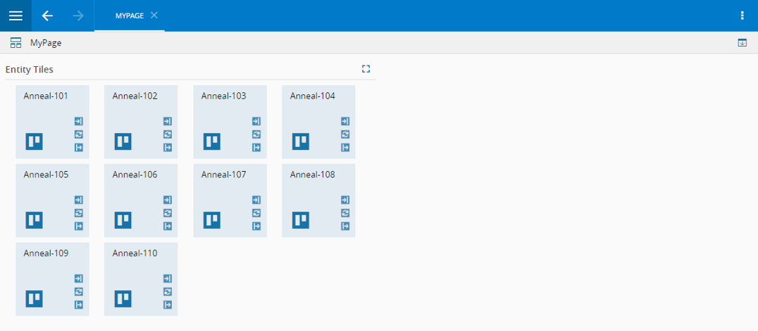 - In any UI Page in Build mode, select the Entity Tiles from the widgets list located on the left side of the page; drag and drop to the desired place in the UI Page.