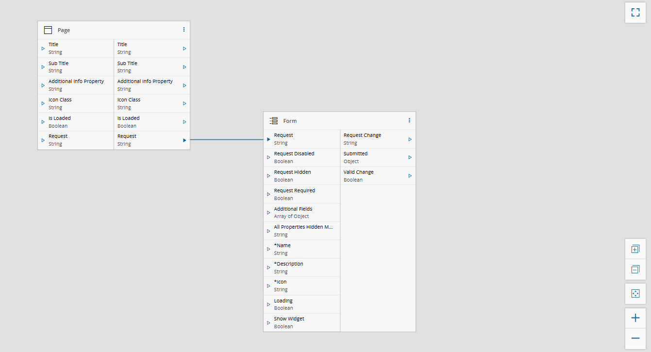Connect the Form widget in the UI Page to the Action Buttons using the Links diagram, as shown below.