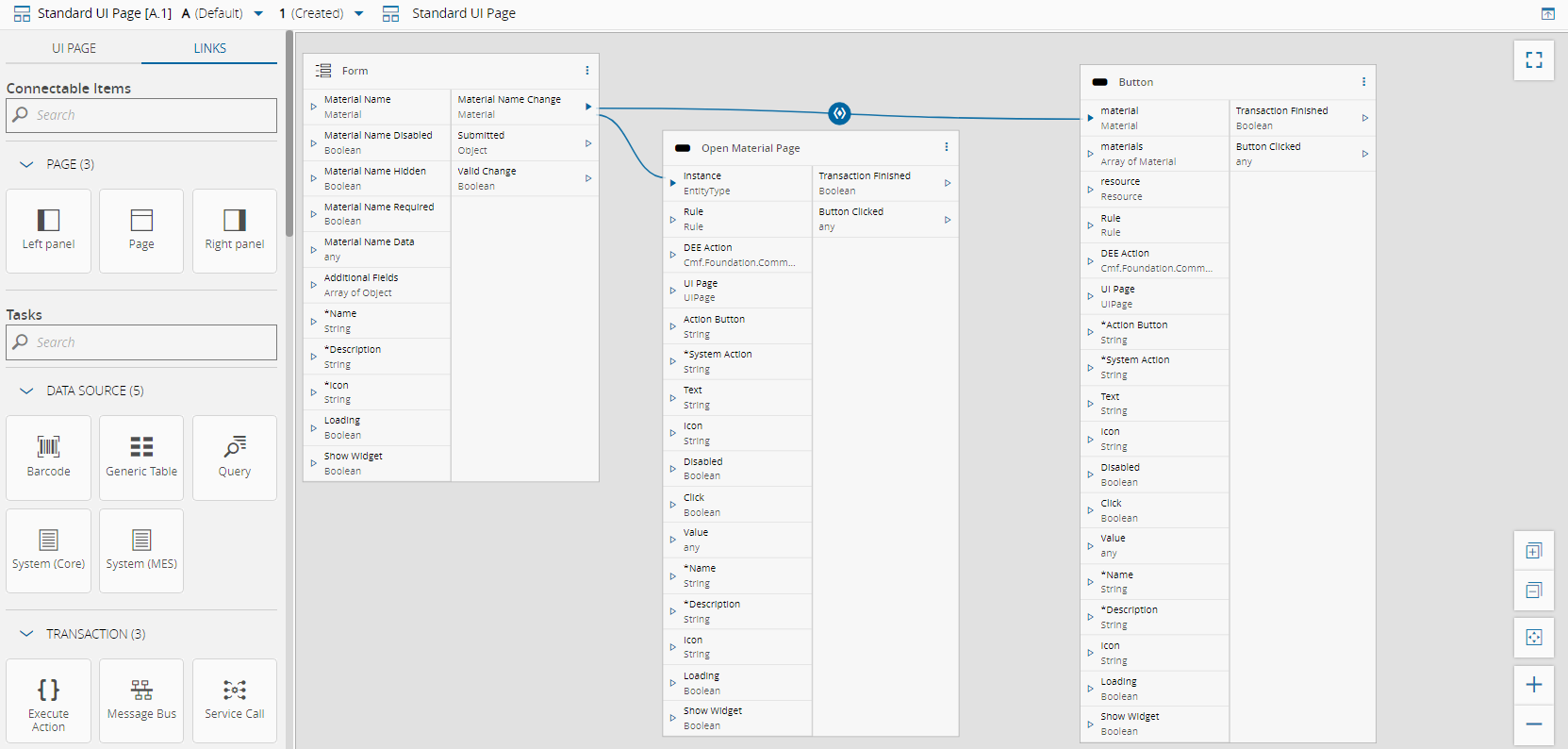 Connect the widgets and tasks using the Links diagram as shown below. For more information on using the Links diagram, see Design UI Page.