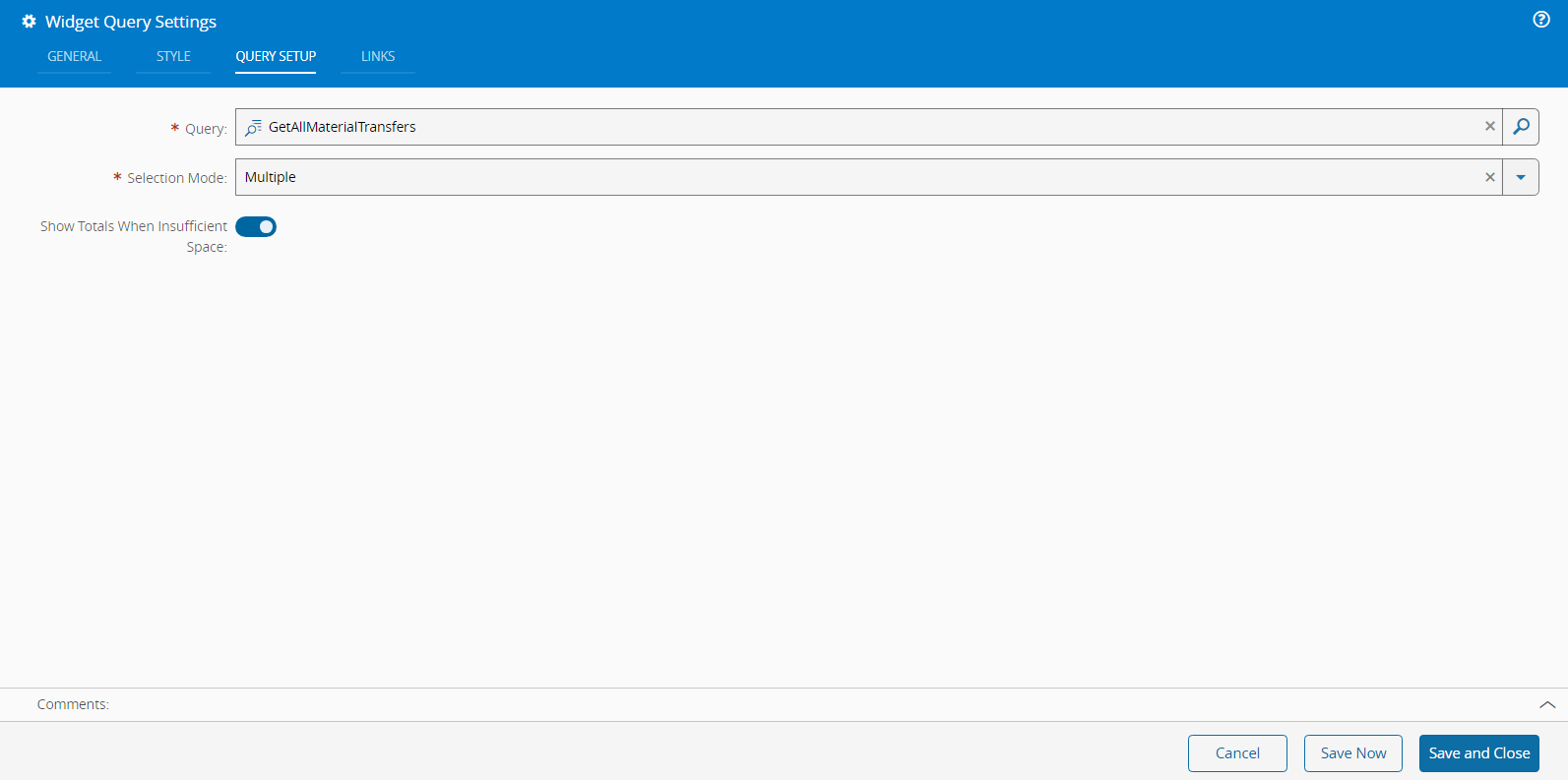 Select Save and Close to complete the widget configuration.