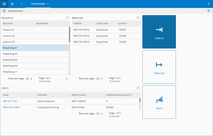 The Query widget displays the results of any Query - including Queries with Parameters. An example is shown below, where a Query widget is used in the bottom of the UI Page to show the results of a Query.
