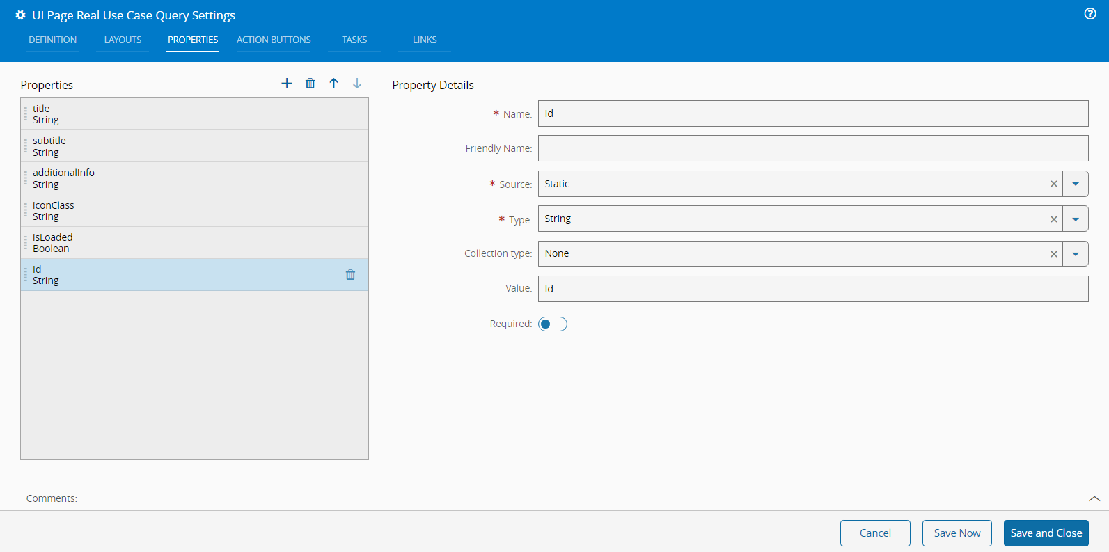 Configure the UI Page: The query expects the entity ID, which can be based on an entity selection by using the