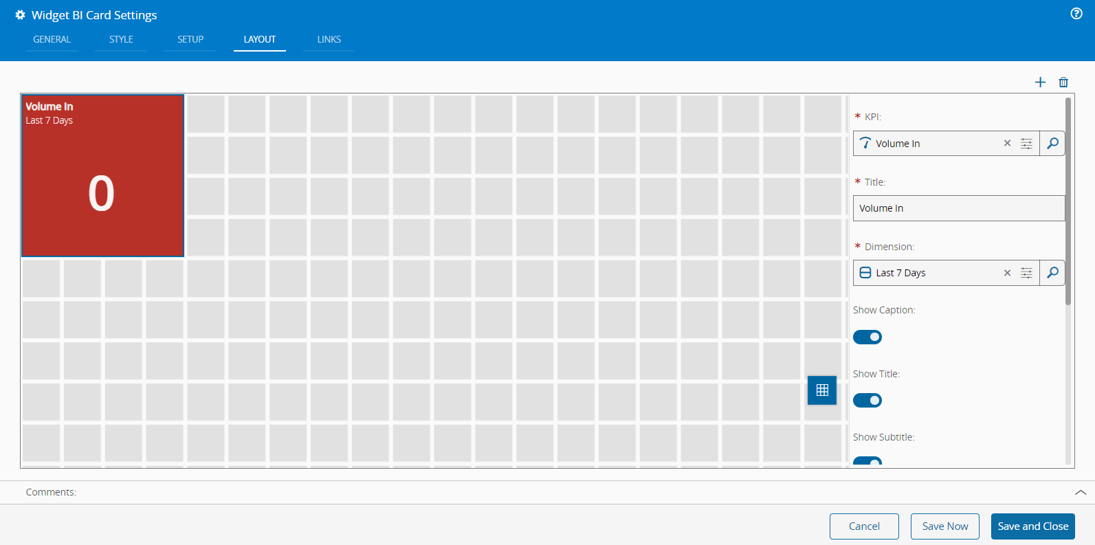 - KPI - Select the KPI to be displayed.