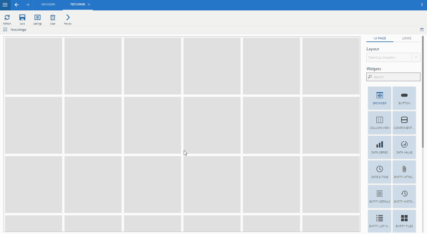 You can also define the Links between this widget and other elements of the UI Page. As this widget doesn't provide any outputs it can only be used as target. The URL property, for example, can be used as input.