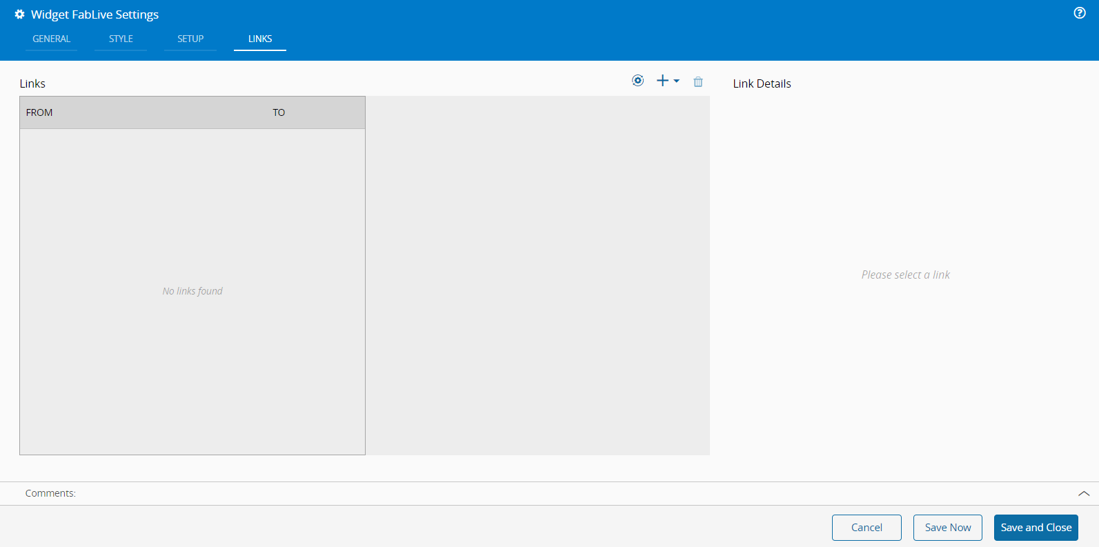 Optionally, define the Links between this widget and other elements of the UI Page.