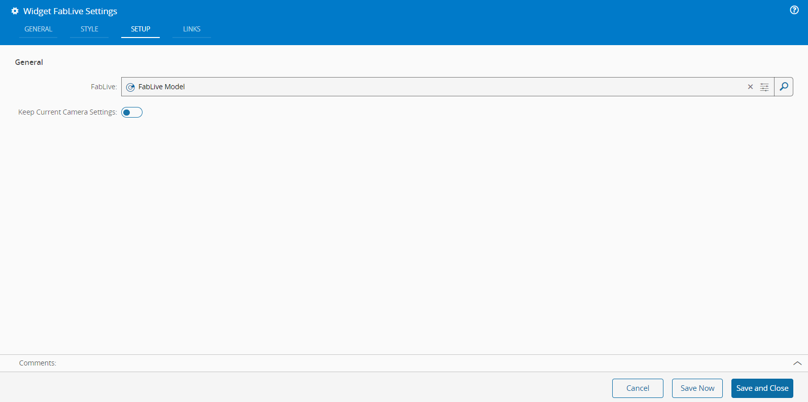 - Keep Current Camera Settings - Choose whether to retain the widget's current camera settings. This option is set to