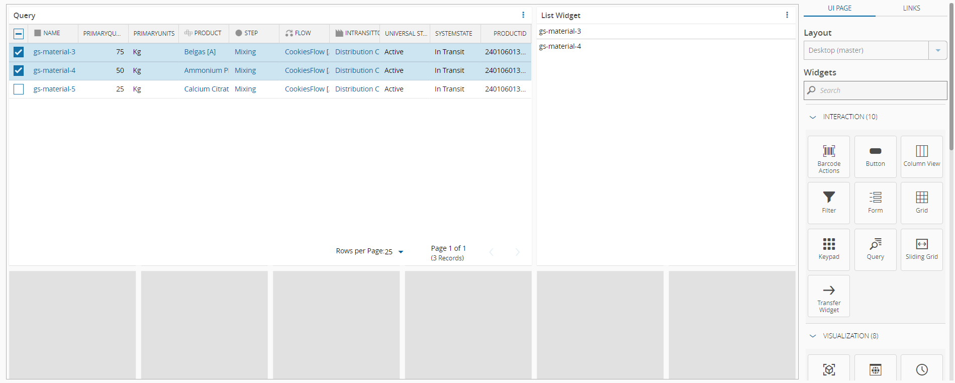 The link between widgets can be established in two ways: either directly in the Links tab on the left panel or through the Settings wizard of either widget. If you opt to connect the widgets through the Links Diagram, drag and drop the Query and List widgets to the UI Page, and then connect the