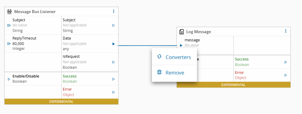Converters operate between two IoT tasks within an Automation Controller. The Automation Controller must include at least two tasks that exchange data or control flow.