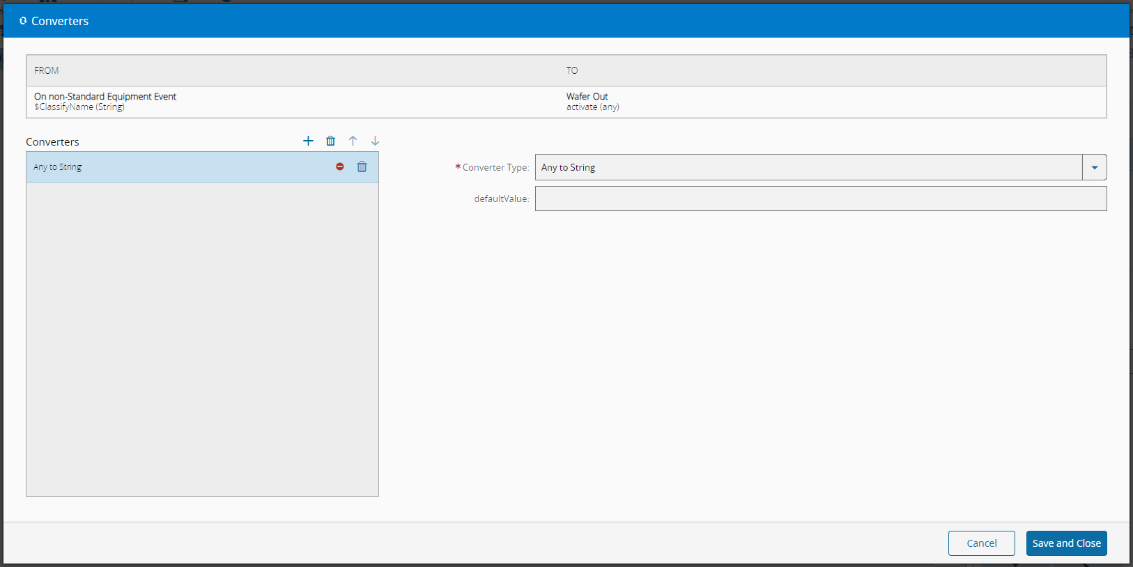 | defaultValue | any | Value to output if the converter fails to convert the input value into a string |