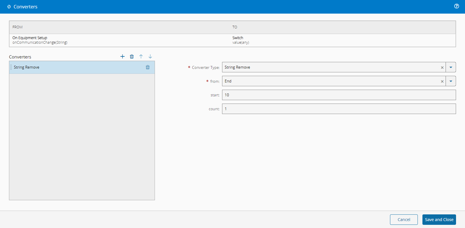| from | String | StartMiddleEnd | Where to start removing characters from the string |