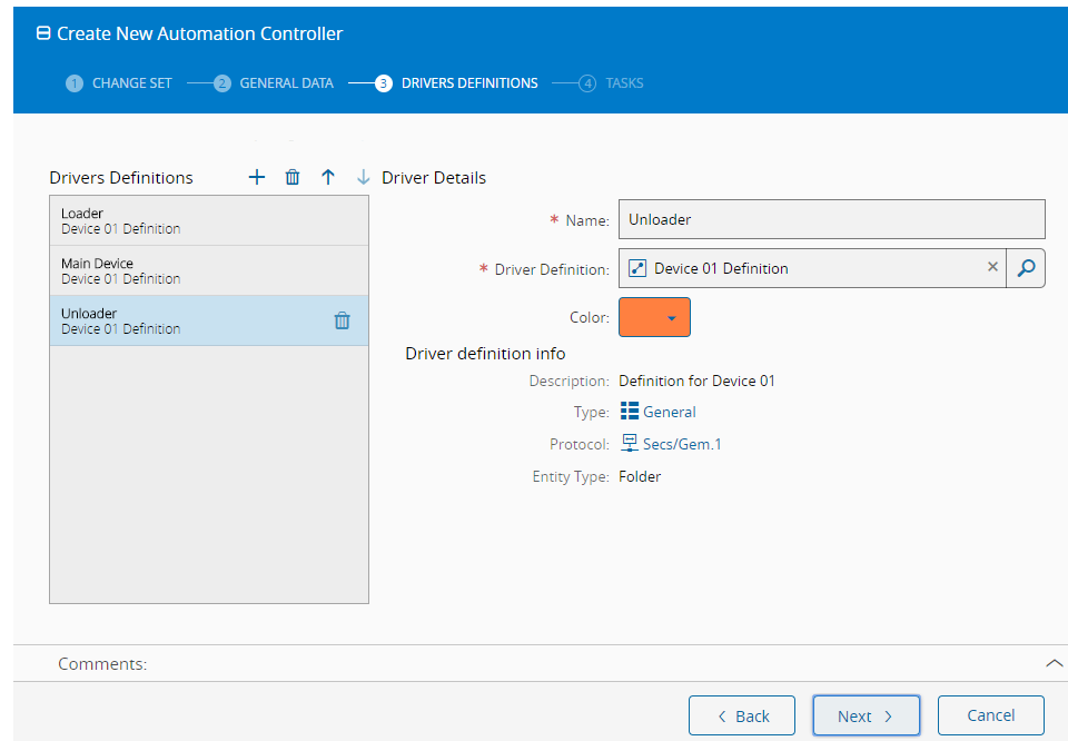 - Color - A color to easily identify the driver in the workflow configurations' pages.