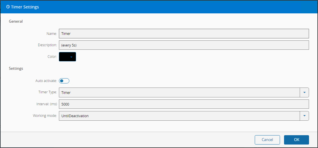 Using the Task settings page, you can set the name and description of the task, the color that it will show when drawn and specific settings for each Task.
