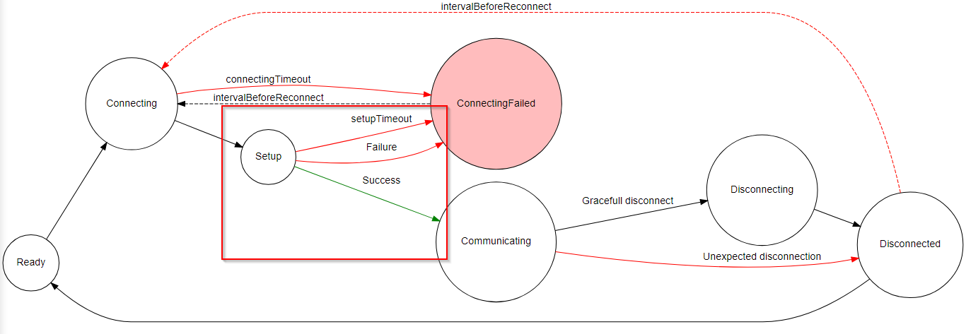 If something is incorrect, then the failure input should be triggered, the driver changes its state to ConnectingFailed and enters into a retry stage where it will try to connect to the equipment or device again.