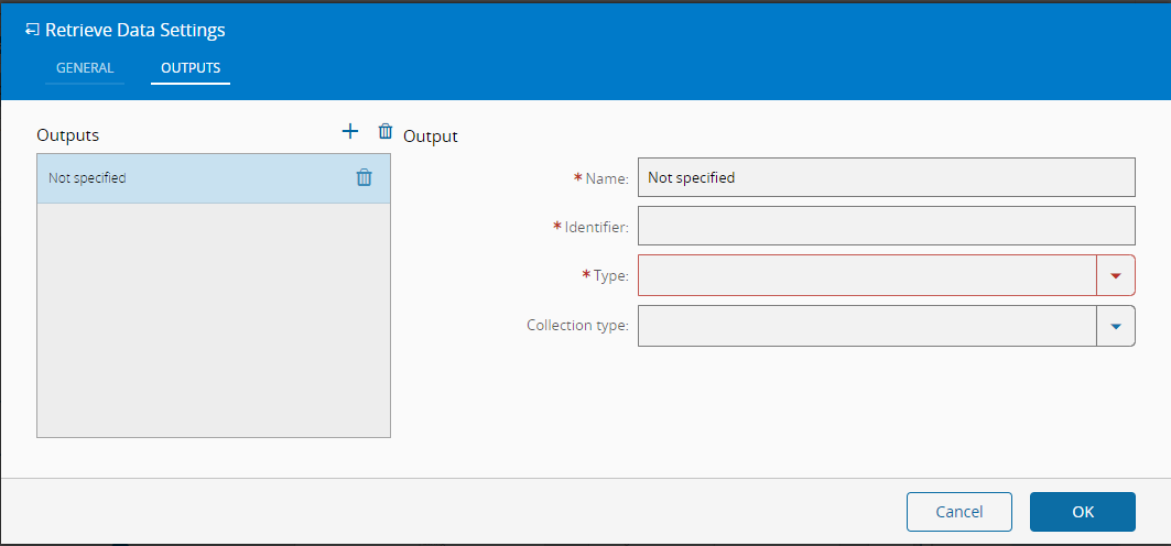 | Name | String | "Not specified" | Output value Name |