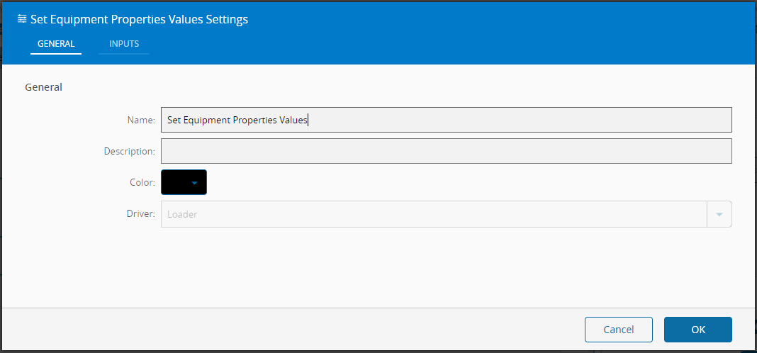 In this task you choose a driver when dropping it into the workflow (if you have more than one driver associated with the controller). When the task is activated the given input values are sent to the equipment.
