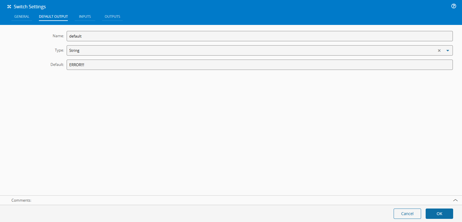 And finally, the Default Output tab, you can optionally add a final output that will be used if none of the previous ones match the input.