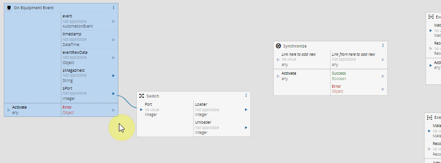 The behavior is rather simple. Just link to the Link here to add new input and a copy of the origin is created (same name and data type) and the link is also created between the two elements. Also, you can drag the Link from here to add new output into an input of another task to create a new output of the same name and type and link them.