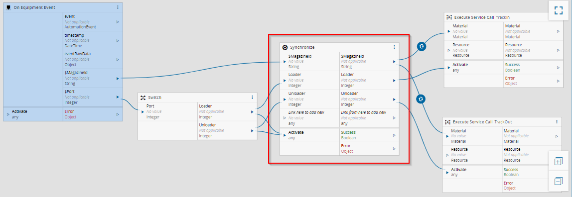 Without the Synchronize Task, it would require far more logic/Tasks to make sure the $MagazineId variable would be the correct one on the TrackIn and TrackOut respectively.