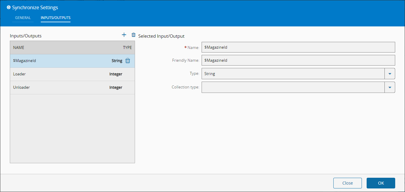 | Type | enum | LongDecimalDateTimeBooleanStringInteger... | Type of the input/output value | |