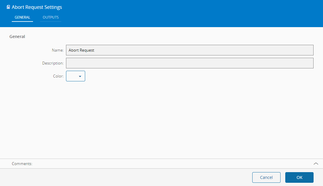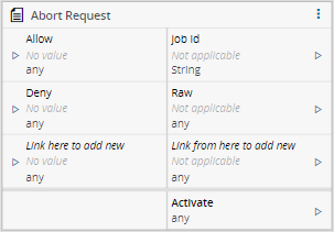 This Task needs to be used with the Worker Manager which will start this Task through the AbortRequest event. After that, custom logic can be added to the Workflow and then link it to the Allow / Deny inputs of this Task, with the result decision.