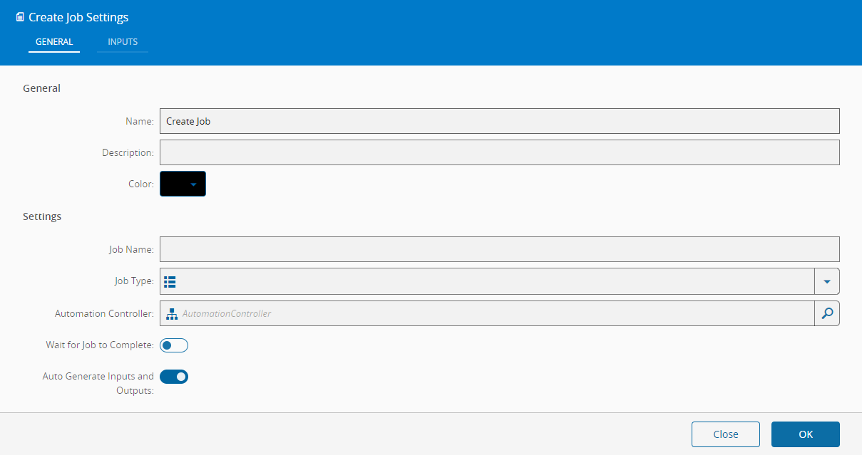The task Create Job is a Task that allows the creation of Factory Automation jobs.