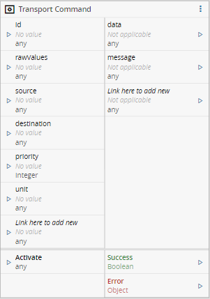The TransportCommand task is only activated when a value different from False is sent to the Activate input.