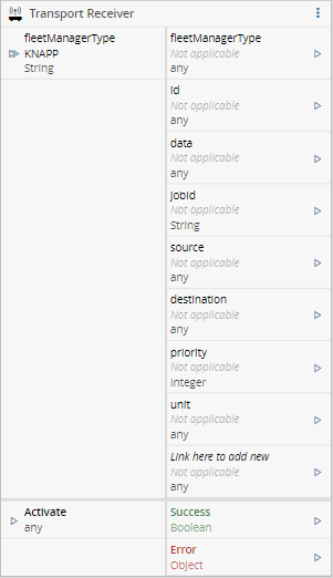 The Transport Receiver task is only activated when a value different from False is sent to the Activate input.