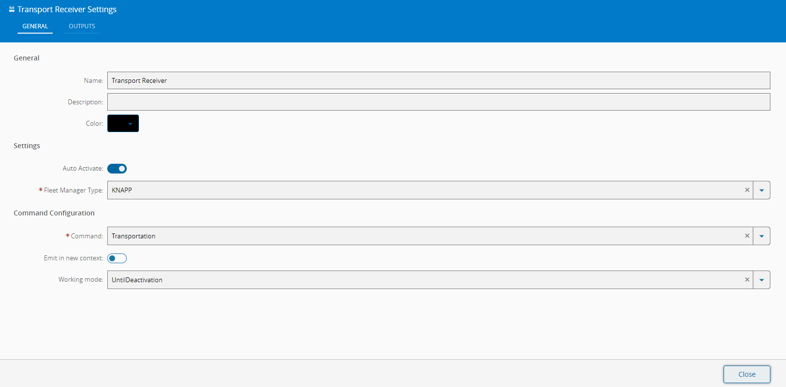 | Fleet Manager Type | enum | KNAPPMIRCustom | KNAPP | Fleet manager type (to differentiate between implementations). If Custom selected, Fleet Manager Type must be specified. |