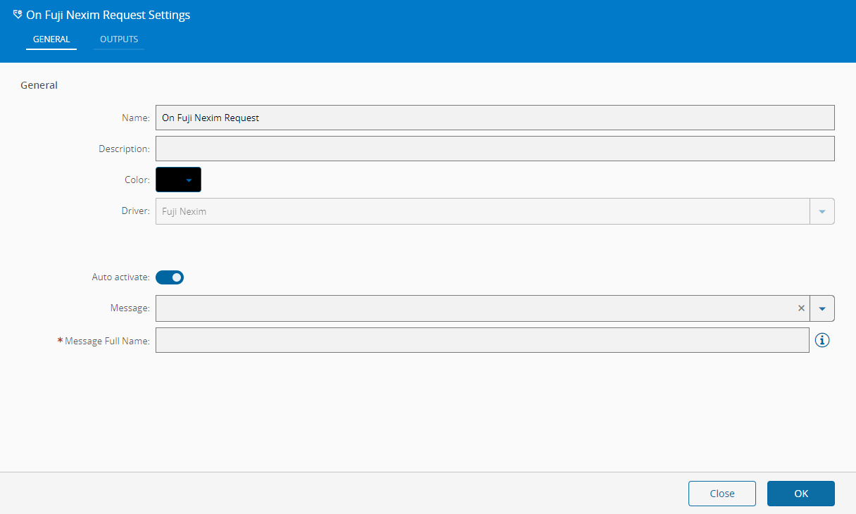 | Message Full Name | string | Name of the message from Fuji Nexim specification, e.g.: STARTEV. | ||