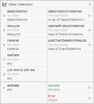 This task is intended to integrate with the PerformDataCollection/PostDataCollection functionality of the MES. By receiving a DataCollection and readings of DataCollection Points, it calls the PerformDataCollection service to create the DataCollectionInstances and post the points. If there's no DataCollection provided (only a Material), the service will check which DataCollectionInstance is associated with that Material, and Post the Data Points to that DataCollectionInstance.