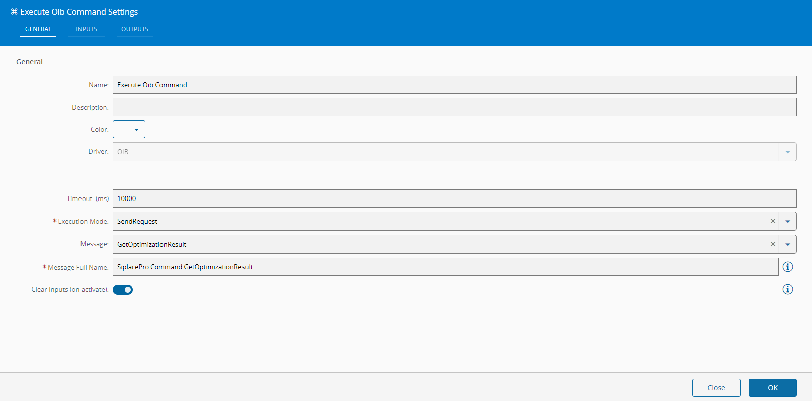 When activated, this Task executes a command of a specific OIB message and waits for the reply. After receiving the reply, this Task's outputs are updated.