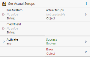 | actualSetups | Object | The actual setups of the specified machine. |