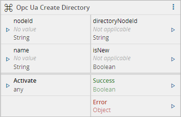 | Fail if exists | Boolean | False | If true and the directory exists, will throw an error, otherwise will output the already existing node id |
