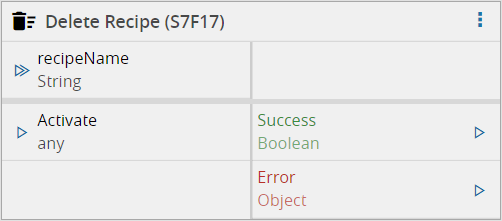 Upon activation, will send an send an S7F17 (Delete Recipe) message to the driver of the equipment.