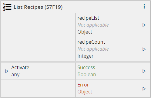 Upon activation, will send an S7F19 (List Recipes) message to the driver of the equipment. The equipment will in turn reply with a list of all the recipes available in the equipment.