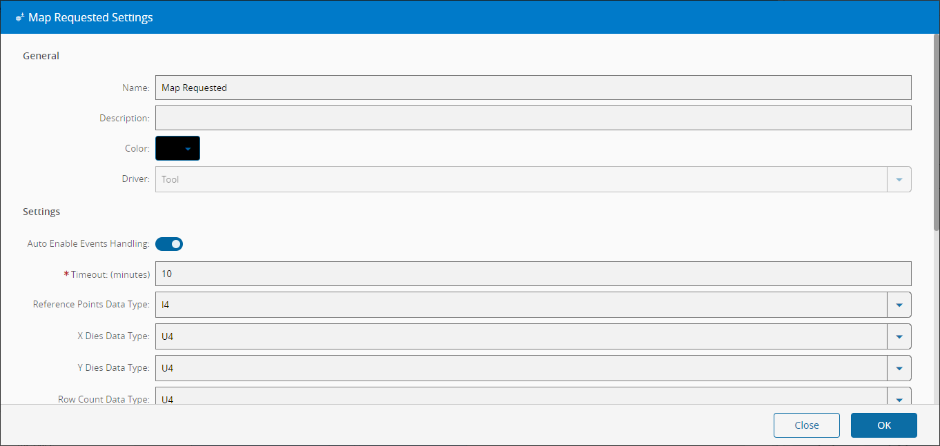 When activated, the Map Requested task will handle S12F3 (Map Setup) and S12F15 (Map Data Requested) SECS/GEM messages from the equipment.