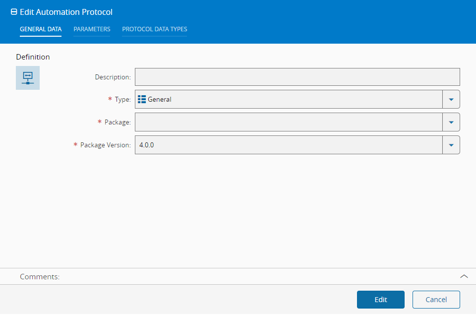 While editing an existing automation protocol, you can change its description, type, package and package description.