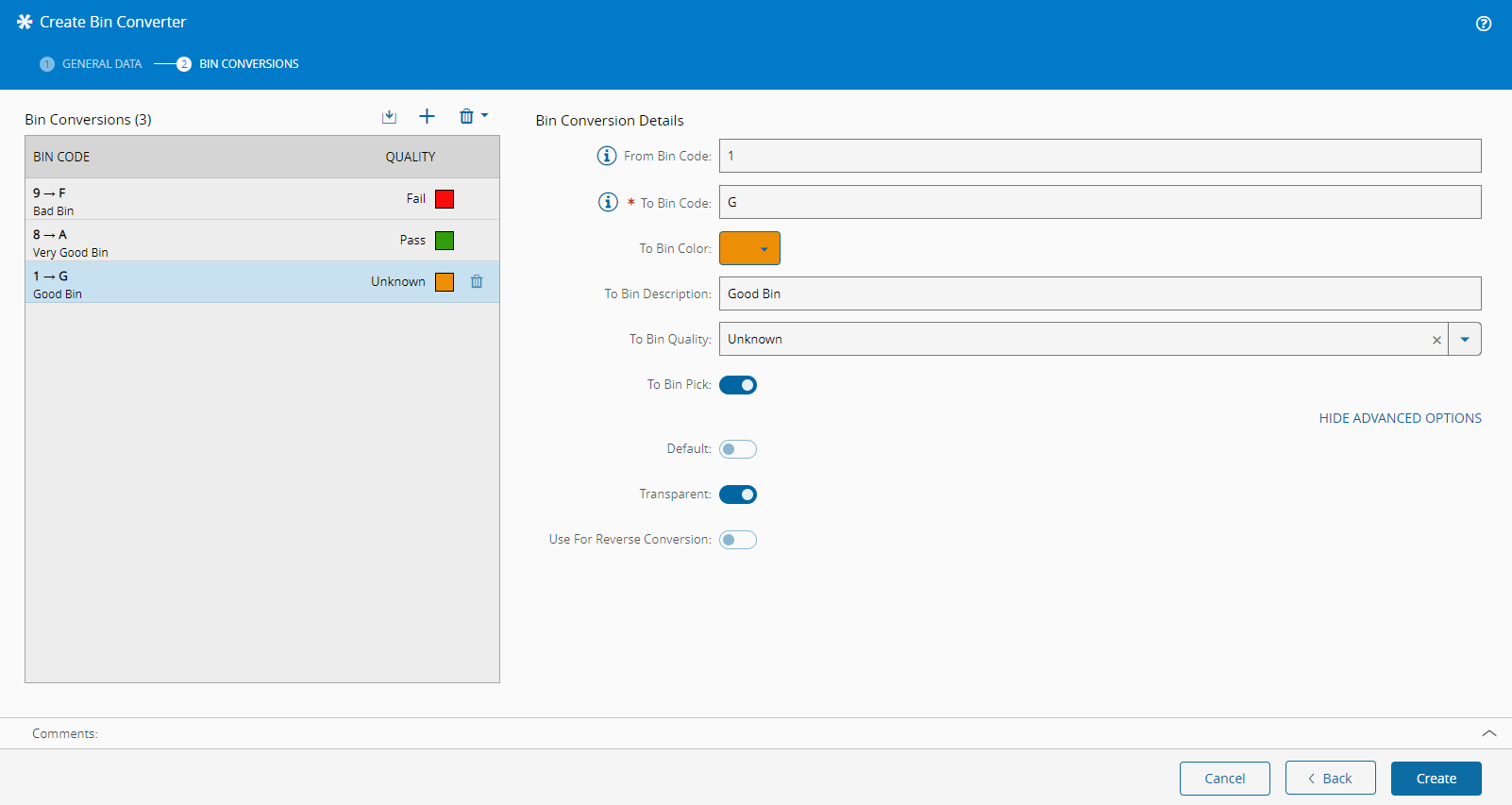 - Bin Code - must match the Bin Type of the Bin Converter and be unique within the Bin Converter